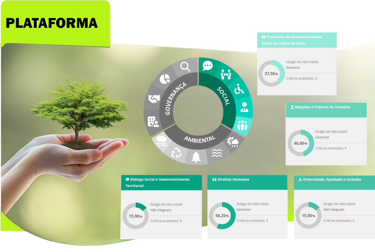 Nossa plataforma permite que organizações realizem diagnósticos completos, acompanhem indicadores e implementem ações alinhadas às melhores práticas de mercado e às metas globais de sustentabilidade. Com uma abordagem simples e eficiente, ajudamos empresas a reduzir riscos, fortalecer sua imagem e conquistar vantagem competitiva.